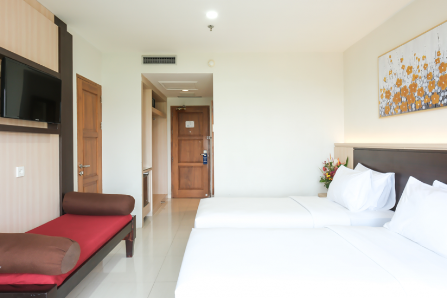 All rooms are equipped with en suite bathroom with overhead shower, vanity unit and toilet; AC; 32”LED TV; cooler; telephone set; safe deposit box; tea/coffee-making facilities, and hair dryer.